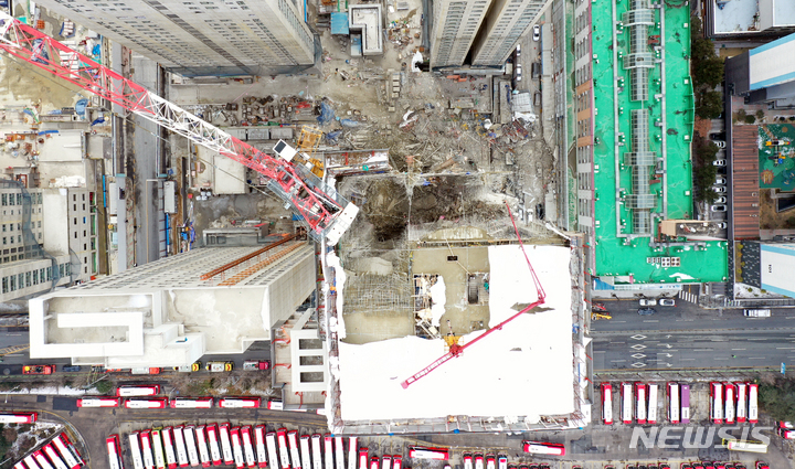 外壁が崩落したマンション工事現場(3/14)