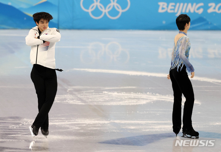 練習に臨むフィギュア車俊煥と羽生結弦(6/7)