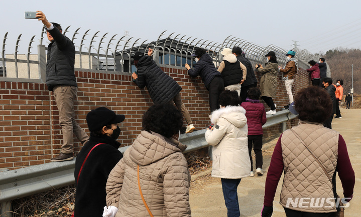 【フォト】ガードレールに登って朴槿恵邸を見る市民たち(4/16)
