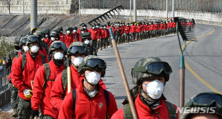 海兵隊、蔚珍の山火事消火活動に投入(3/12)
