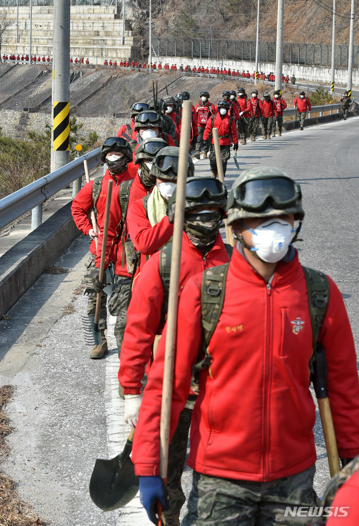 海兵隊、蔚珍の山火事消火活動に投入(8/12)