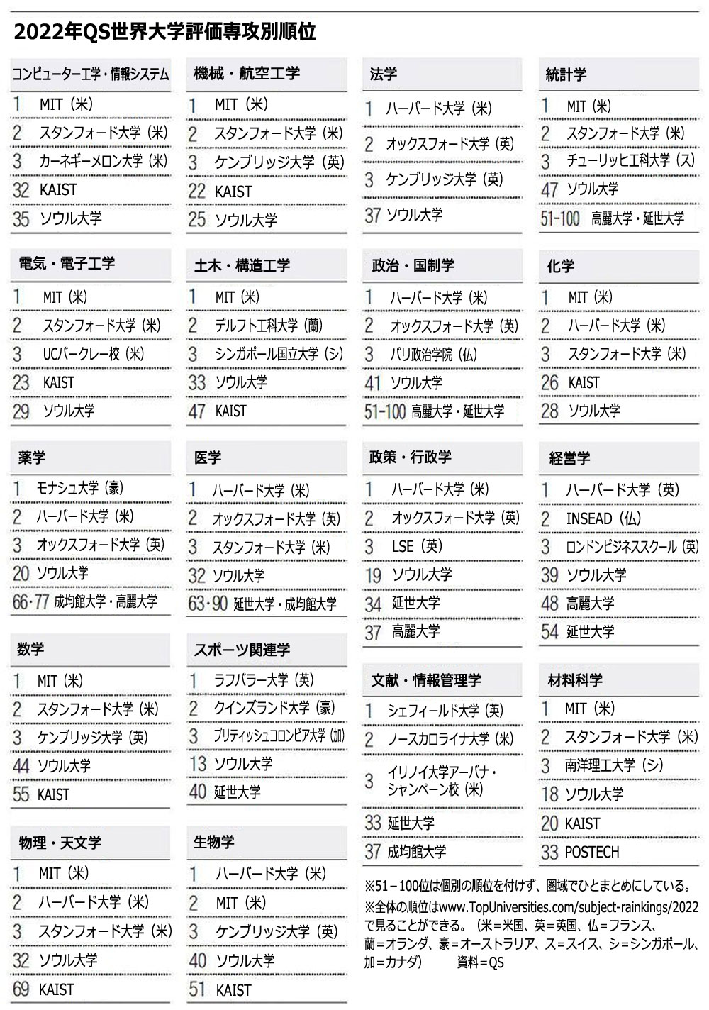 世界のトップ10学科、韓国は4年連続で「0」…シンガポールは23、香港は7(2/2)