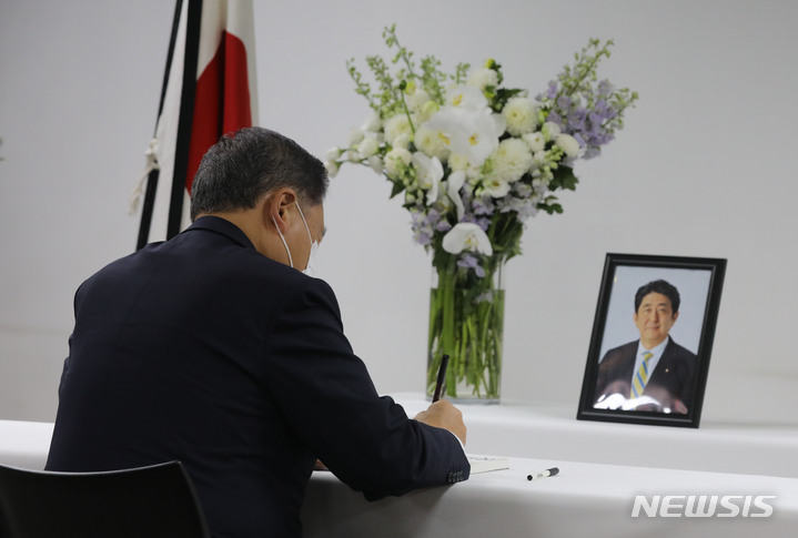 日本大使館公報文化院に設けられた安倍元首相の焼香所(3/13)