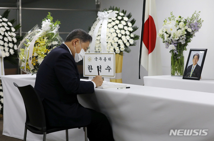 日本大使館公報文化院に設けられた安倍元首相の焼香所(5/13)