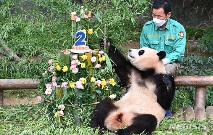 誕生日を迎えたエバーランドの赤ちゃんパンダ「フーバオ」(2/19)