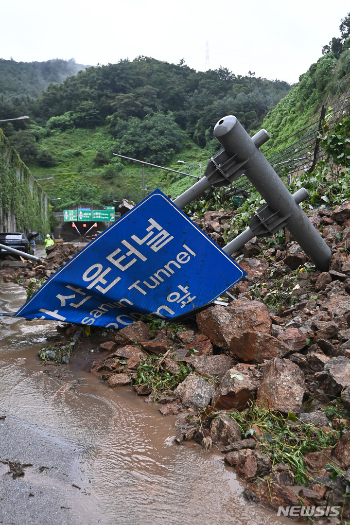 韓国首都圏に大雨、高速道路を覆う土砂 /京畿道・竜仁(10/16)