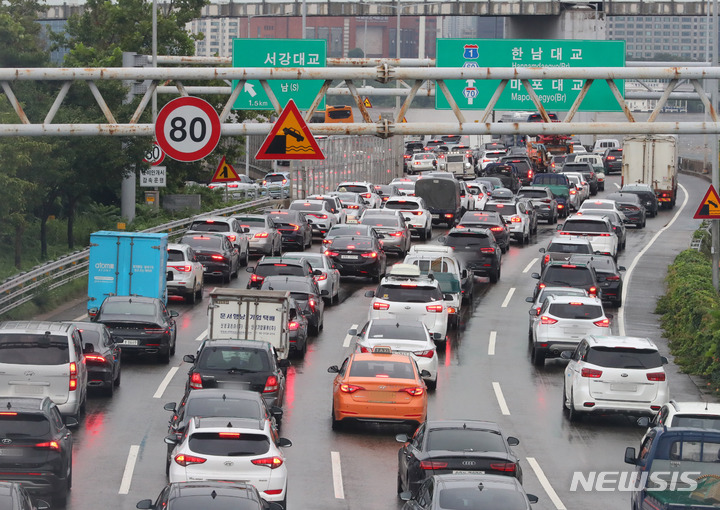 韓国首都圏に大雨、高速道路を覆う土砂 /京畿道・竜仁