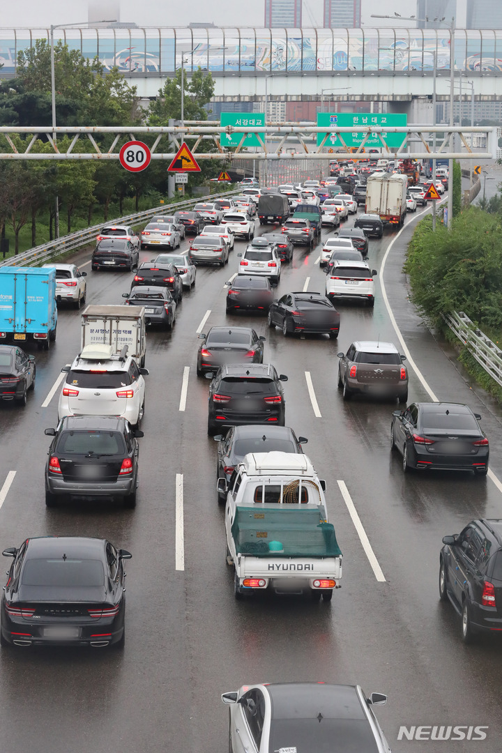 記録的大雨、路上に流された多数の車 /ソウル