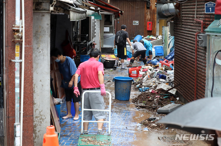 浸水被害にぼう然とする商店主たち /ソウル(2/15)