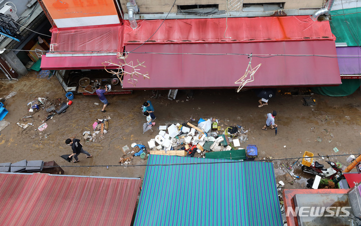 浸水被害にぼう然とする商店主たち /ソウル(9/15)