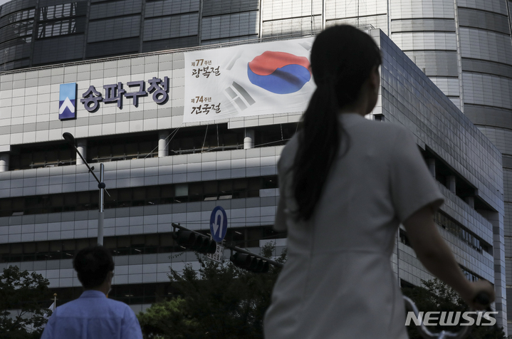 光復節と共に「建国節」と書かれた横断幕/ソウル(5/7)