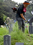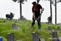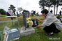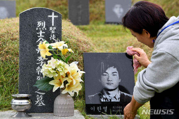 李韓烈烈士の墓で遺影をふく市民/光州(1/14)