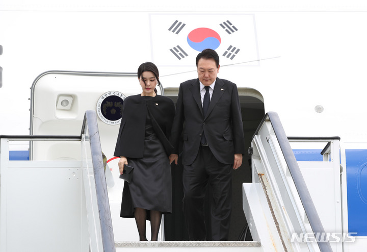 尹大統領夫妻 英ロンドン到着(2/15)