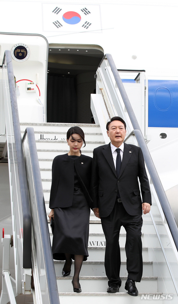 尹大統領夫妻 英ロンドン到着(8/15)