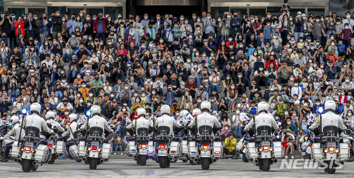 正確な動きでパレードを披露する首都防衛司令部の隊員たち/ソウル(2/16)