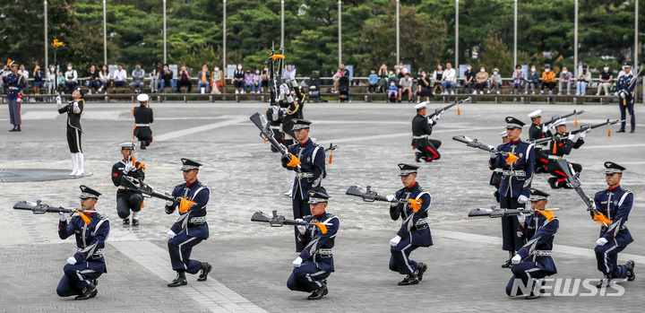 正確な動きでパレードを披露する首都防衛司令部の隊員たち/ソウル(6/16)