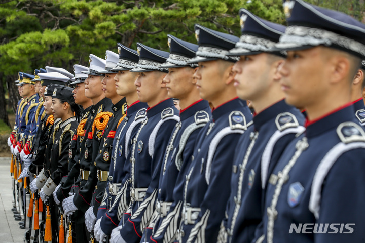 正確な動きでパレードを披露する首都防衛司令部の隊員たち/ソウル(7/16)