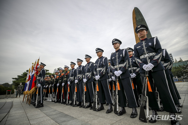 正確な動きでパレードを披露する首都防衛司令部の隊員たち/ソウル(8/16)