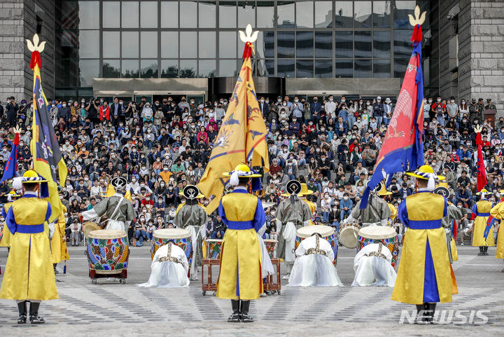 正確な動きでパレードを披露する首都防衛司令部の隊員たち/ソウル(10/16)