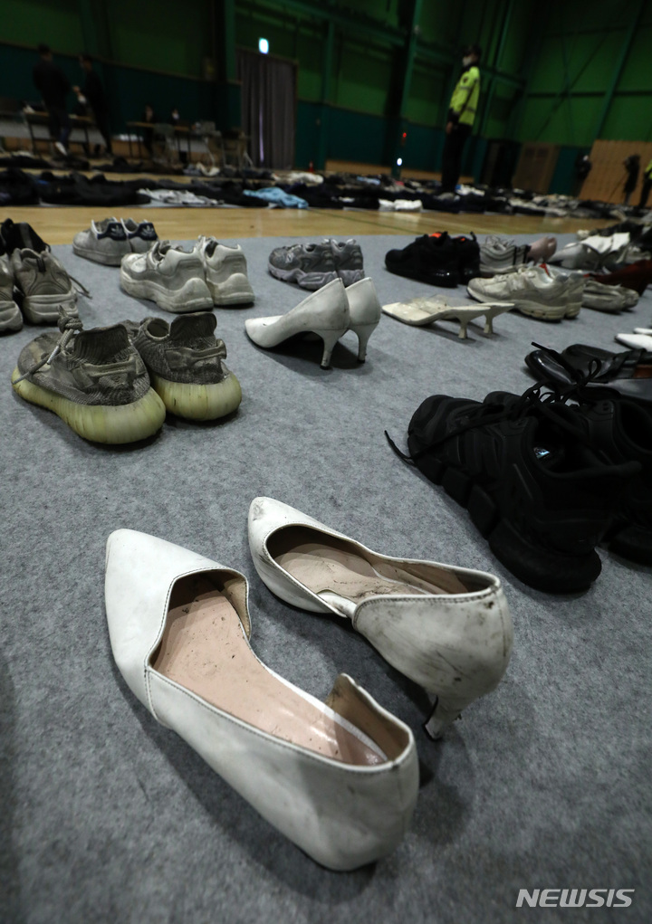 梨泰院雑踏事故:持ち主をなくした衣服や靴の数々(5/17)