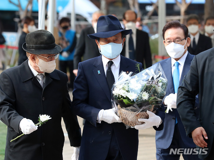 梨泰院雑踏事故:合同焼香所を弔問した麻生太郎副総裁/ソウル(2/10)