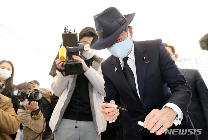 梨泰院雑踏事故:合同焼香所を弔問した麻生太郎副総裁/ソウル(4/10)