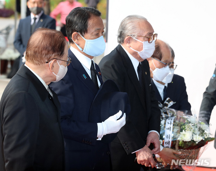 梨泰院雑踏事故:合同焼香所を弔問した麻生太郎副総裁/ソウル(7/10)