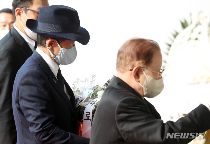 梨泰院雑踏事故:合同焼香所を弔問した麻生太郎副総裁/ソウル(8/10)
