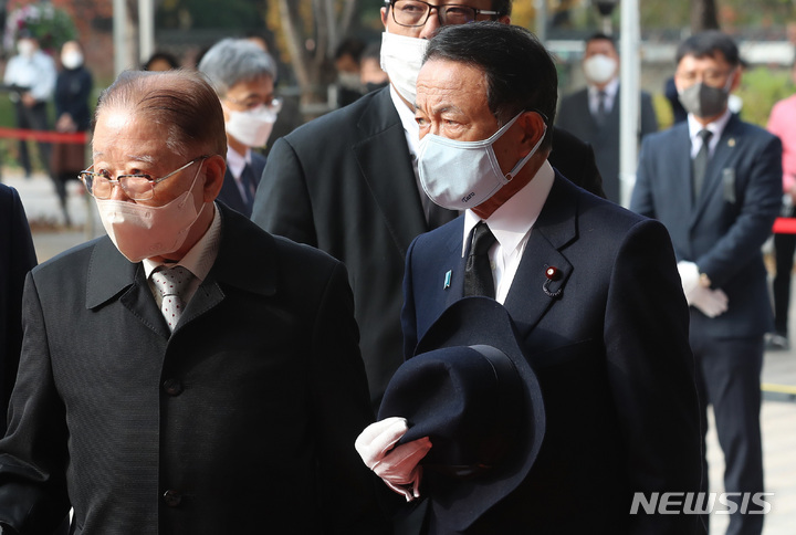 梨泰院雑踏事故:合同焼香所を弔問した麻生太郎副総裁/ソウル(10/10)