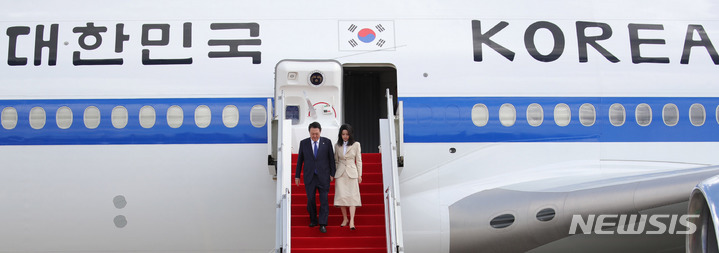 韓国大統領夫妻、カンボジアのプノンペンに到着(11/11)