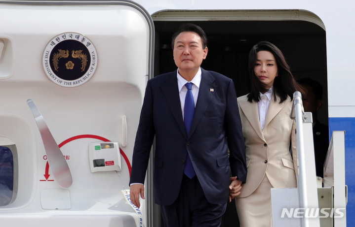 韓国大統領夫妻、カンボジアのプノンペンに到着(9/11)