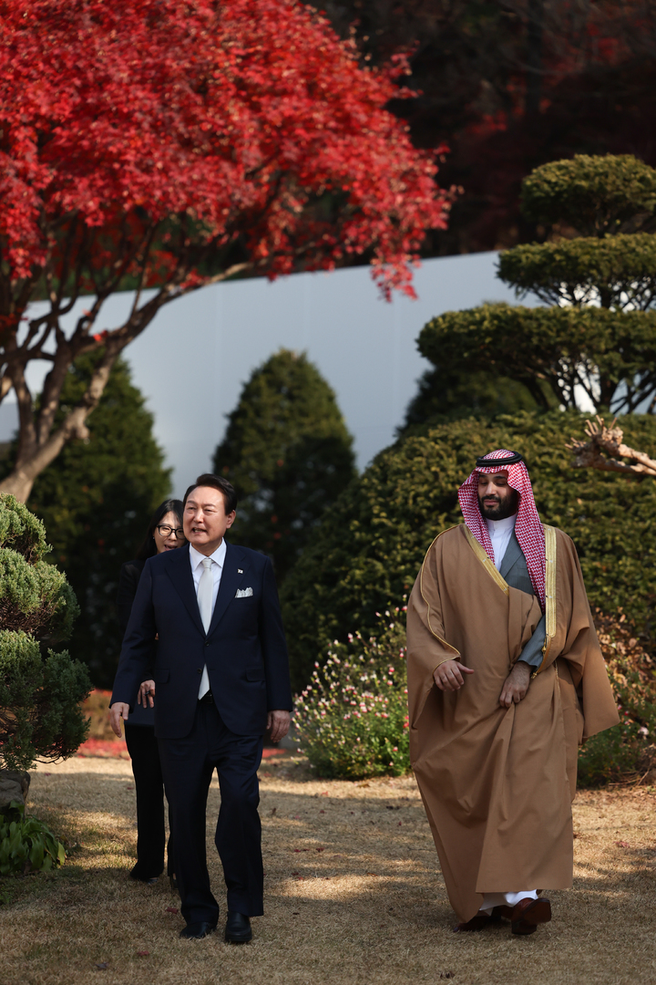 サウジのビン・サルマン皇太子と歓談する尹錫悦大統領(5/7)