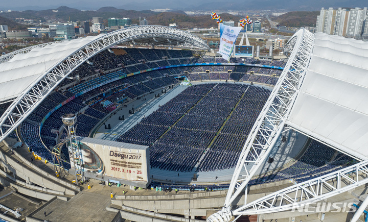 大邱スタジアムで開かれた「新天地イエス教会」12支派・10万人修了式(2/9)