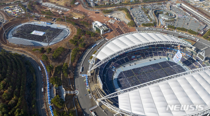 大邱スタジアムで開かれた「新天地イエス教会」12支派・10万人修了式(4/9)