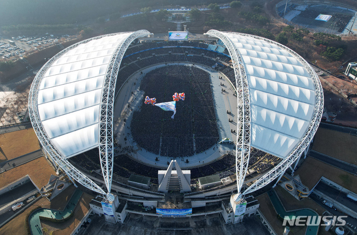 大邱スタジアムで開かれた「新天地イエス教会」12支派・10万人修了式(6/9)