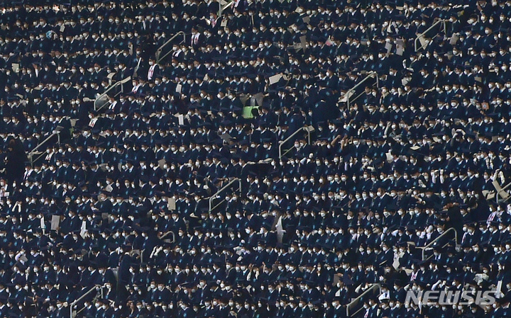 大邱スタジアムで開かれた「新天地イエス教会」12支派・10万人修了式(8/9)
