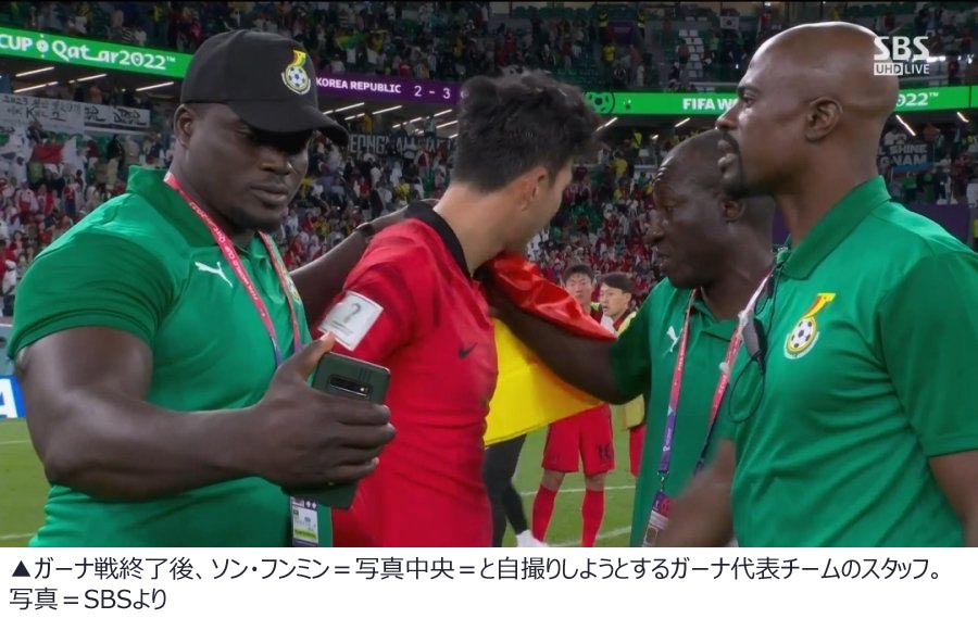 カタールW杯:落胆するソン・フンミンと自撮り、ガーナ代表スタッフに批判の声(2/2)