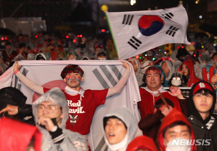 カタールW杯:雨に負けず熱気あふれる応援(6/14)