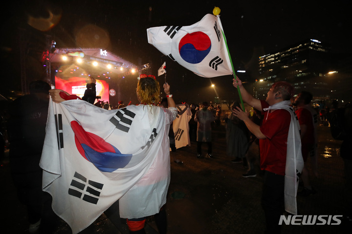 カタールW杯:雨に負けず熱気あふれる応援(9/14)