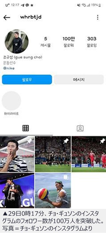 カタールW杯:インスタフォロワー2万人のチョ・ギュソン、2得点で一気に100万人突破(2/2)