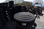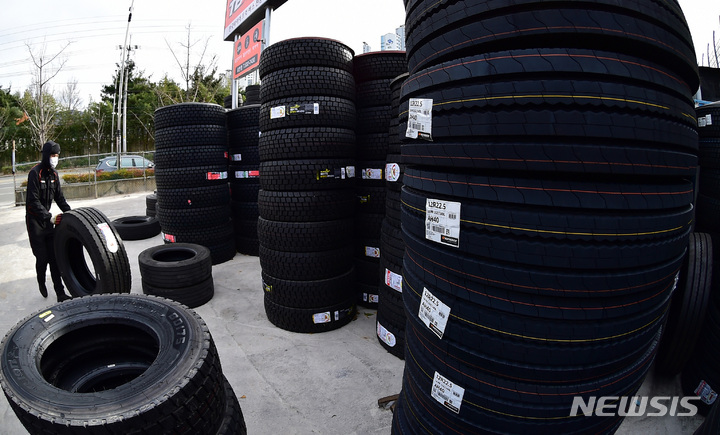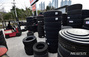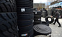 貨物連帯スト12日目、積み上がるタイヤ(1/11)