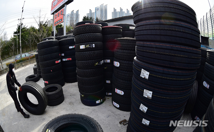 貨物連帯スト12日目、積み上がるタイヤ(4/11)