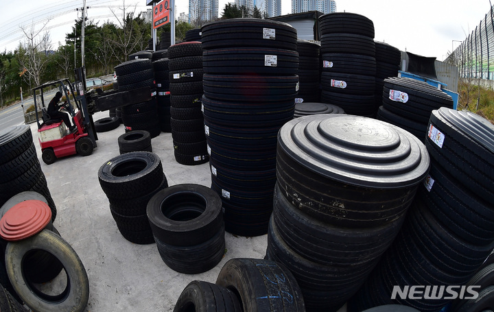 貨物連帯スト12日目、積み上がるタイヤ(6/11)