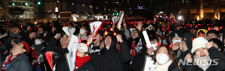 カタールW杯:「残念だけど太極戦士たちはよく戦った」 雪降る光化門広場で街頭応援