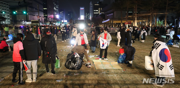 カタールW杯:「残念だけど太極戦士たちはよく戦った」 雪降る光化門広場で街頭応援