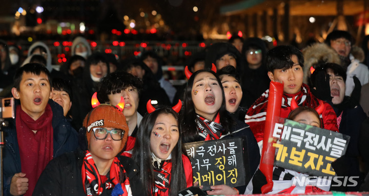 カタールW杯:「残念だけど太極戦士たちはよく戦った」 雪降る光化門広場で街頭応援