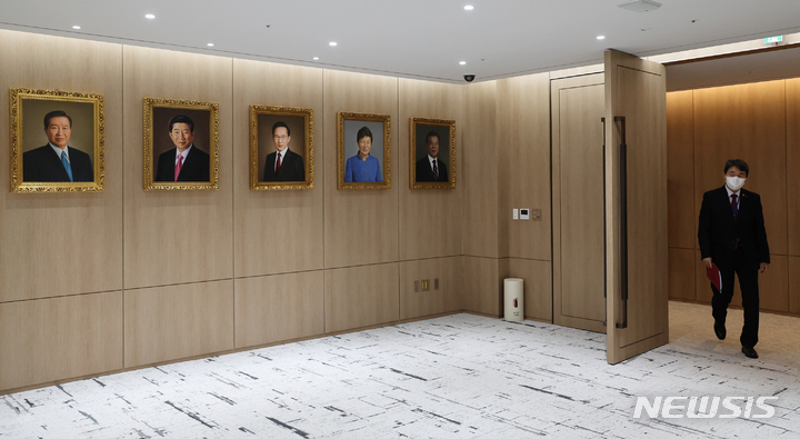 大統領室庁舎の国務会議場入り口に展示されている歴代大統領の肖像画(4/8)