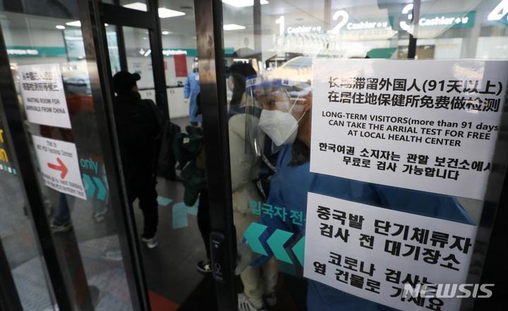 新型コロナの検査センターに向かう中国からの入国者(4/5)