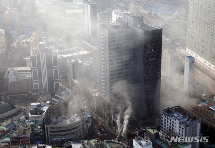 火災が発生したオフィステル駐車タワー /釜山(8/9)