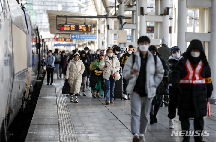 帰省先から戻ってきた人々で込み合うソウル駅(12/18)